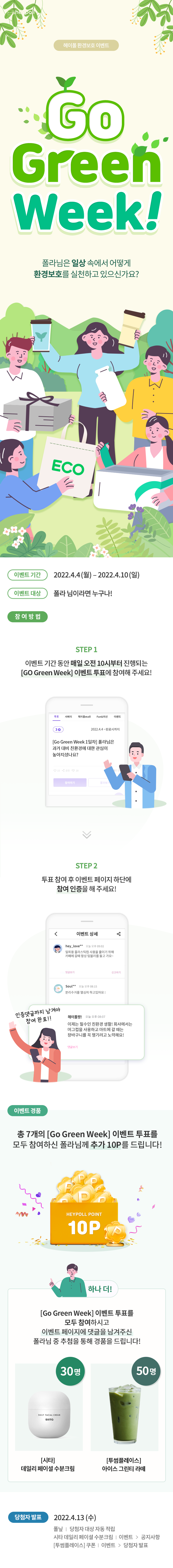 - 매일 오전 10시부터 Go Green Week! 이벤트 투표
