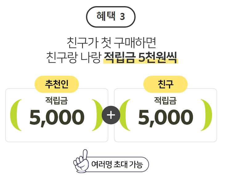 - 혜택3 : 친구추천 적립금 5천원
