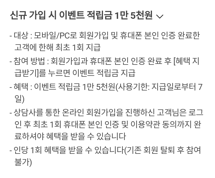 1) 혜택1 : 신규가입 시 이벤트 적립금 1만 5천원