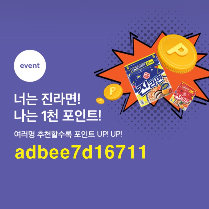 ▶ 친구추천 혜택 : 진라면(5입) 무료교환 쿠폰(매운맛/순한맛)