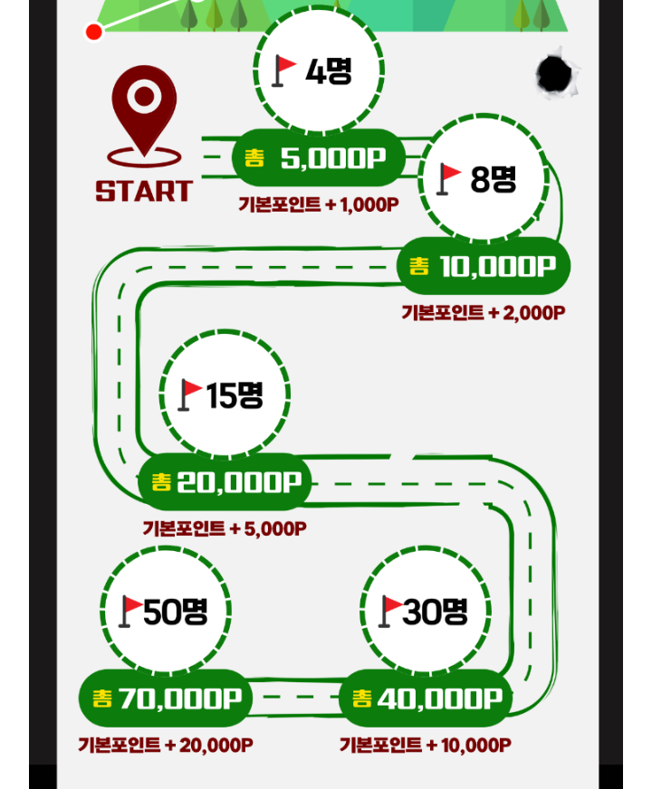 - 50명 : 기본포인트 + 20,000P = 70,000P