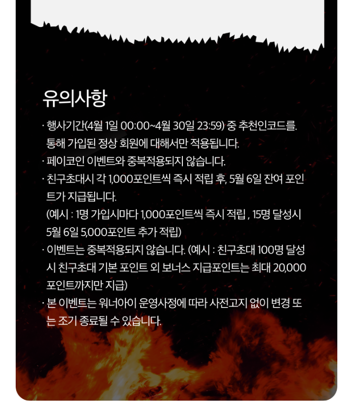 - 친구초대시 각 1000포인트씩 즉시 적립 후, 5월 6일 잔여 포인트가 적립된다.