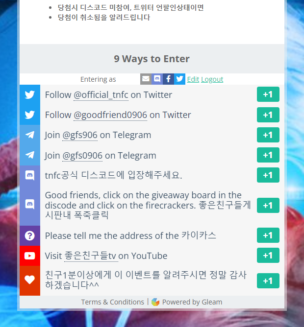 - 트위터 팔로우, 텔레그램 가입, 디스코드 가입, 유튜브 방문