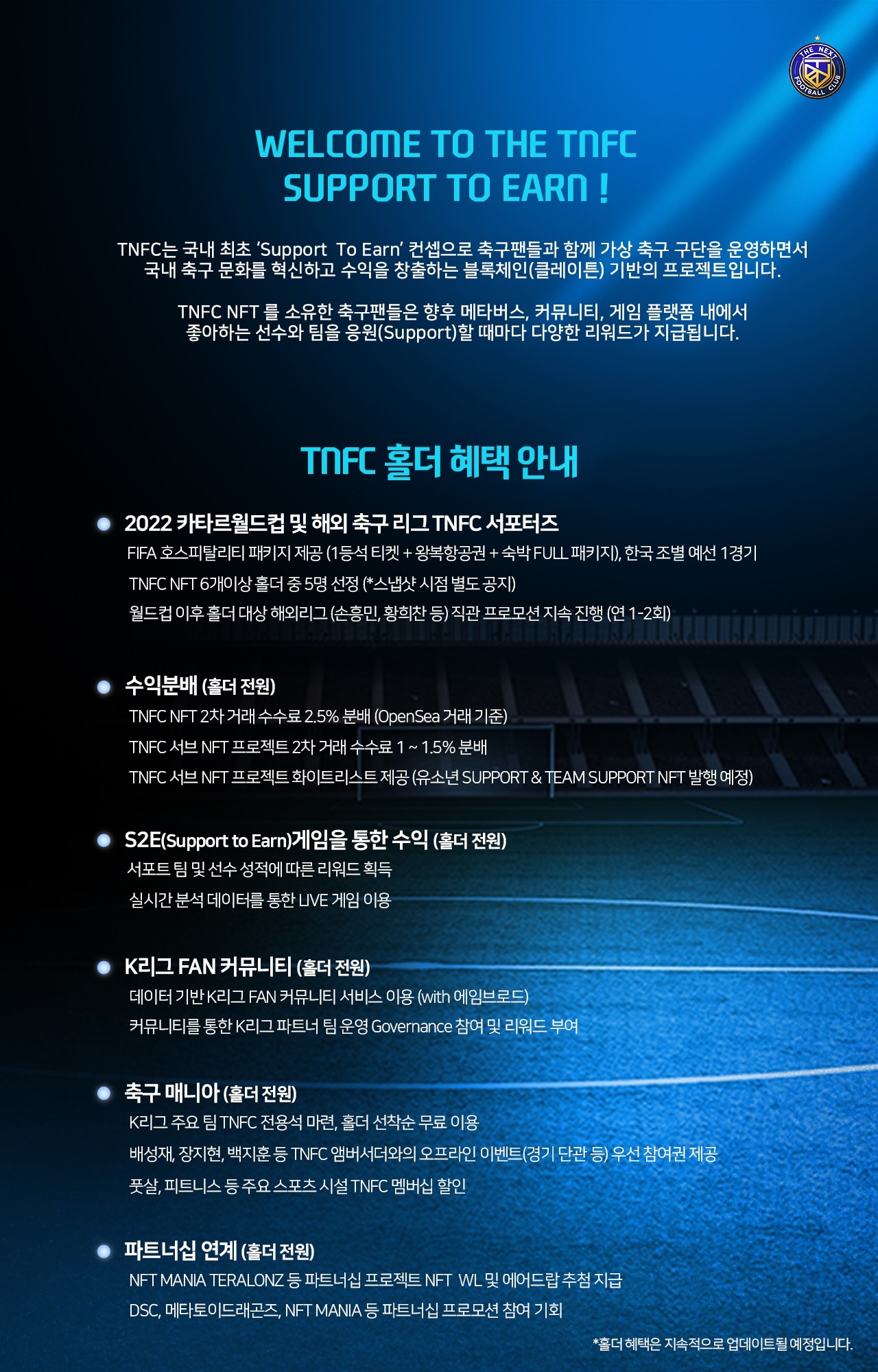 ▶ S2E(Support to Earn) 및 TNFC 홀더 주요 혜택