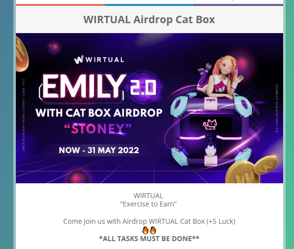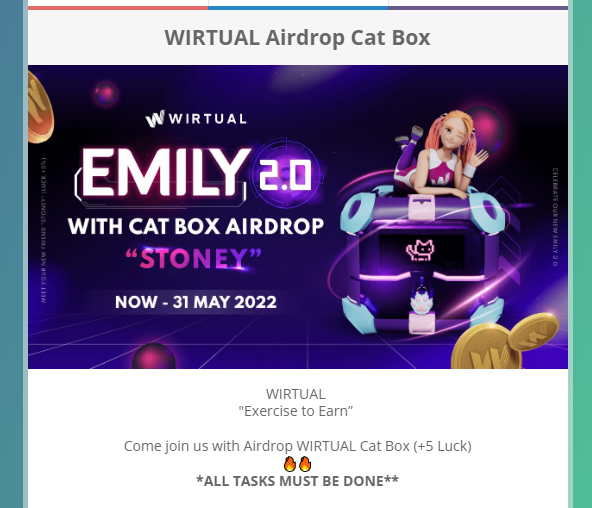 WIRTUAL EMILY 2.0 Cat Box 에어드랍 이벤트가 5.31까지 진행된다.