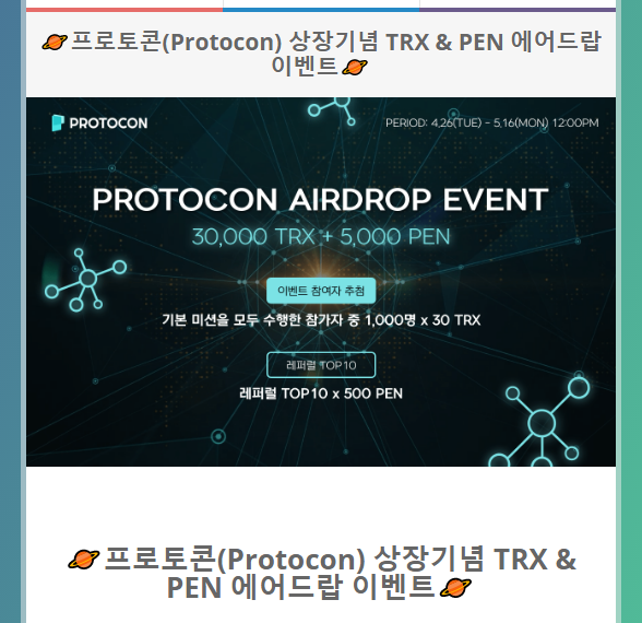▣ 프로토콘(Protocon) 상장기념 TRX & PEN 에어드랍