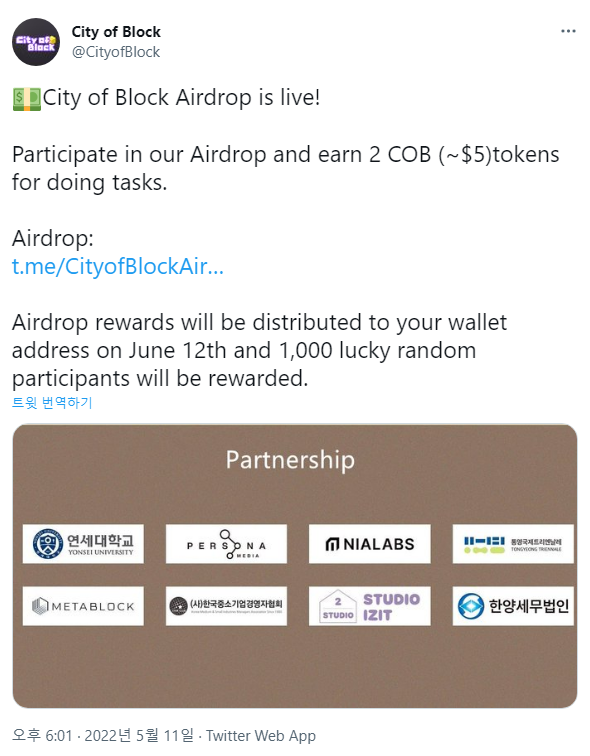 City of Block COB 에어드랍 이벤트(~6.12)