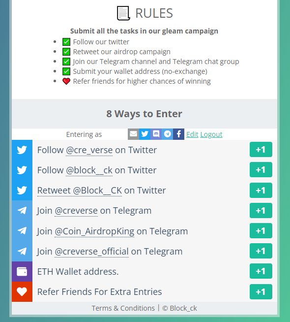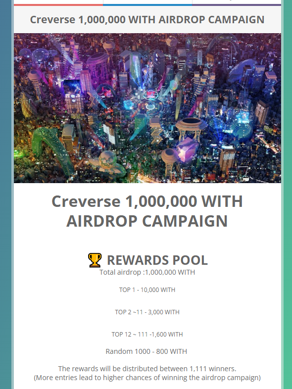 크레버스(Creverse) 1,000,000 WITH 에어드랍 이벤트에 참여해보세요.