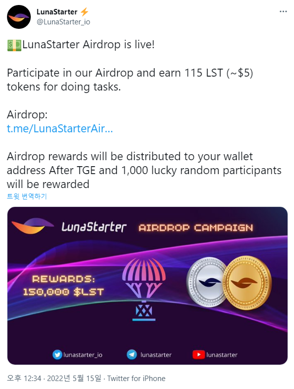 ▣ LunaStarter 150,000 LST 에어드랍