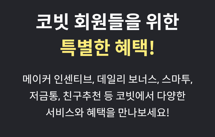 코빗 웰컴 이벤트! ( 초대코드 : B1DD4A )