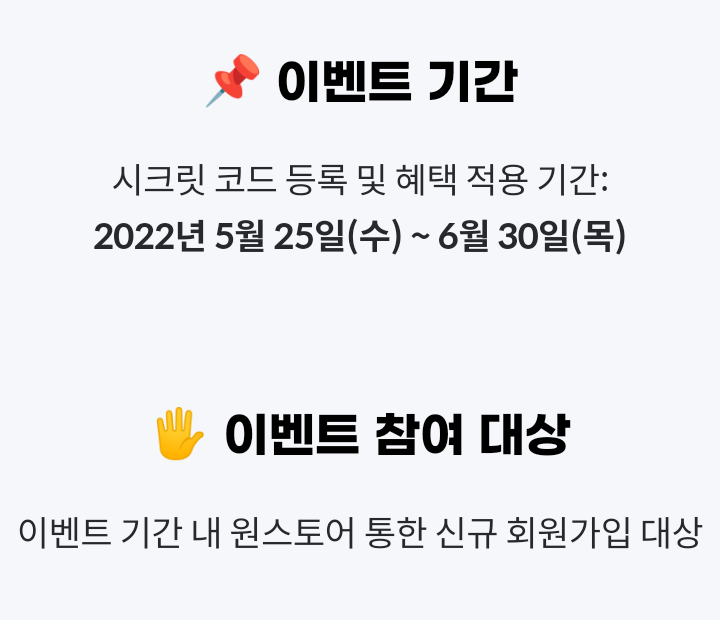 ▶ 이벤트 기간 : 2022년 5월 25일(수) ~ 6월 30일(목)