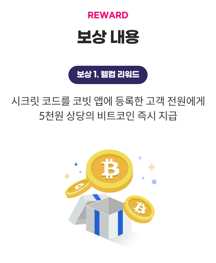 - 코빗에시크릿 코드 등록 시 이벤트 혜택 지급