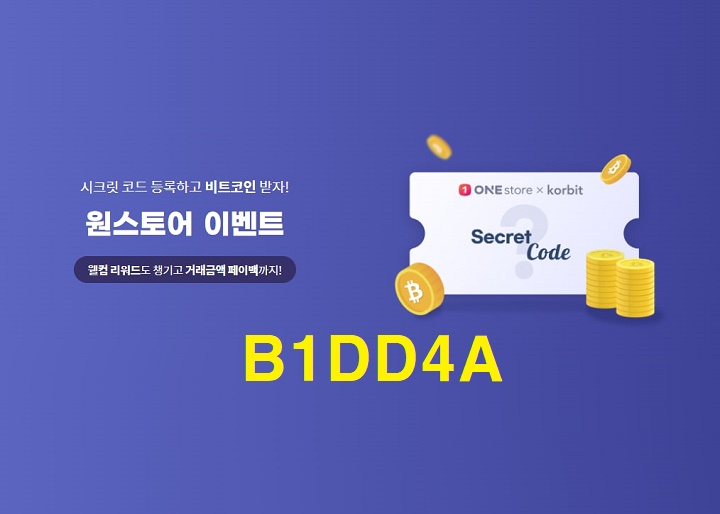 코빗 원스토어 시크릿 코드 등록하고 비트코인 받자!(~6.30)( 추천 코드 : B1DD4A )