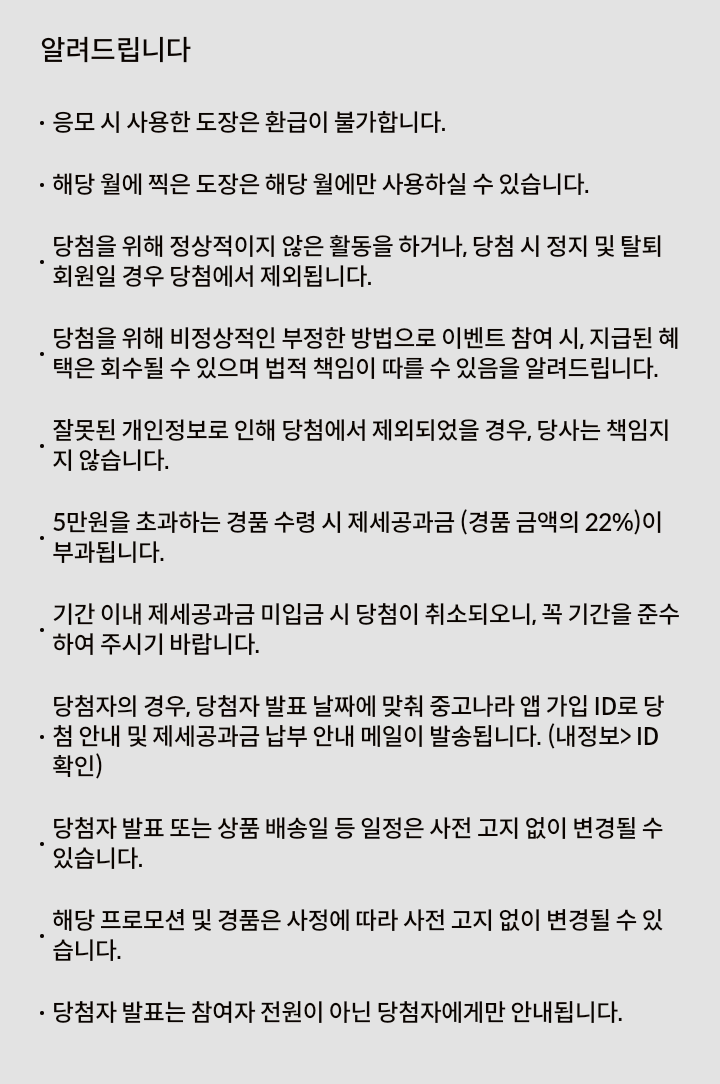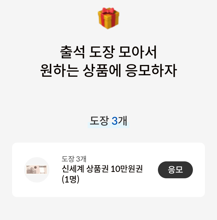 - 도장 3개 : 신세계 상품권 10만원권(1명)