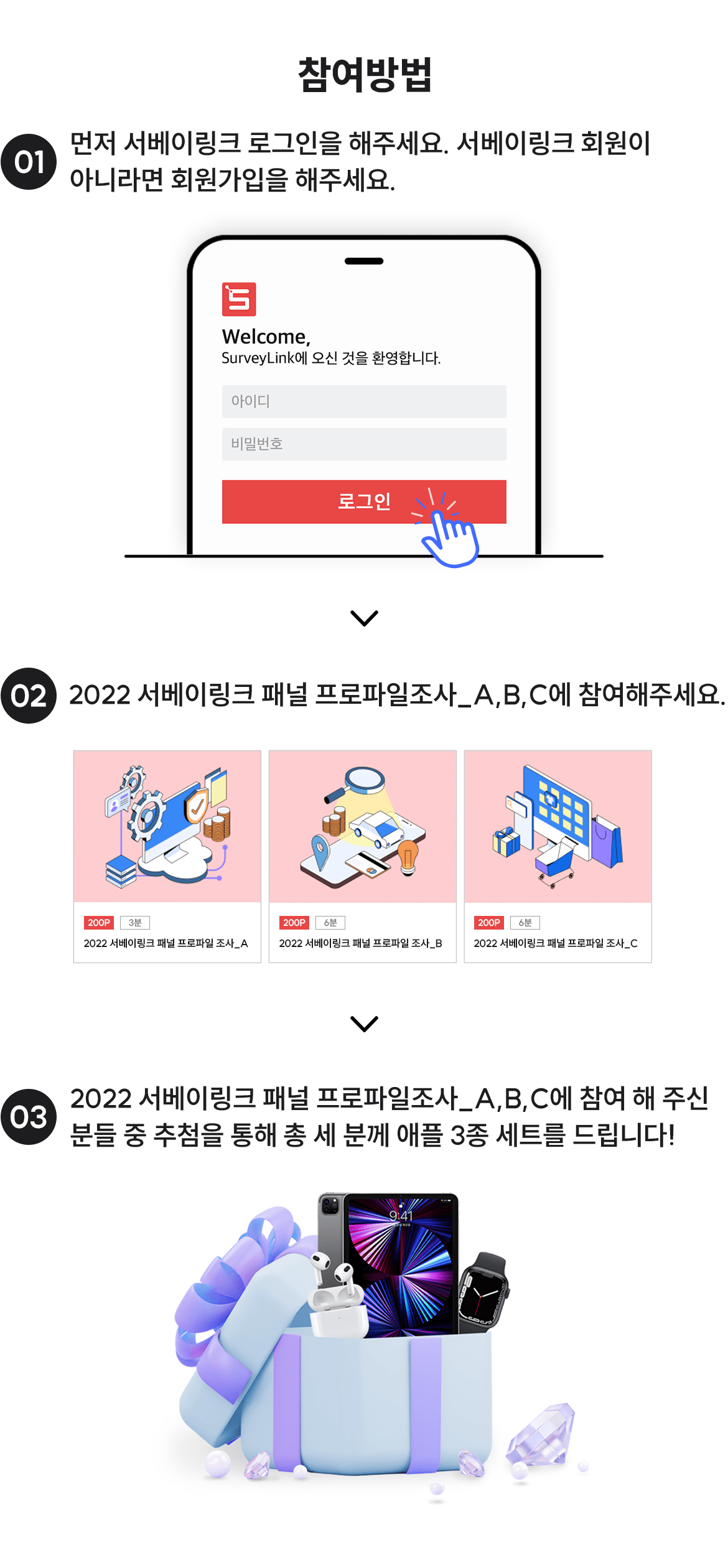 서베이링크 패널 프로파일 조사하고 애플 3종 경품 응모하자( 추천코드 : 46AE3B )