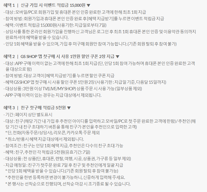 GS SHOP에서 가입축하금 1만5천원과 추가혜택을 받아보세요.