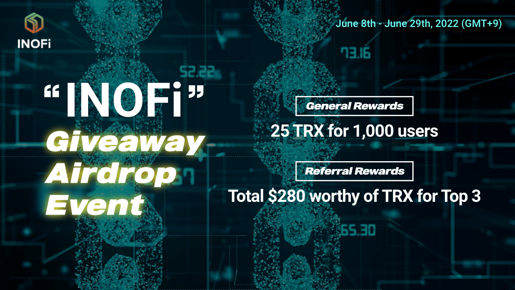INOFi 25 TRX (1,000명) 에어드랍 이벤트가 6.29 까지 진행중이다.