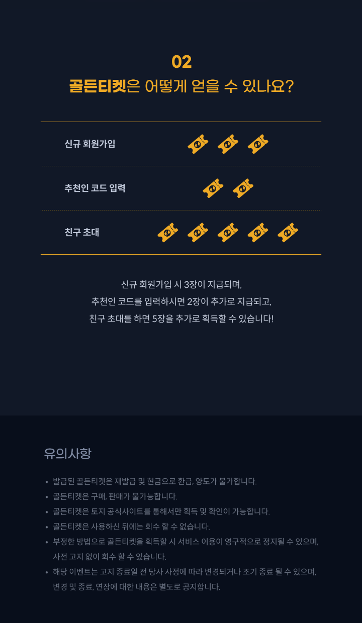 - 골든티켓은 토지 공식사이트를 통해서만 획득 및 확인이 가능하다.
