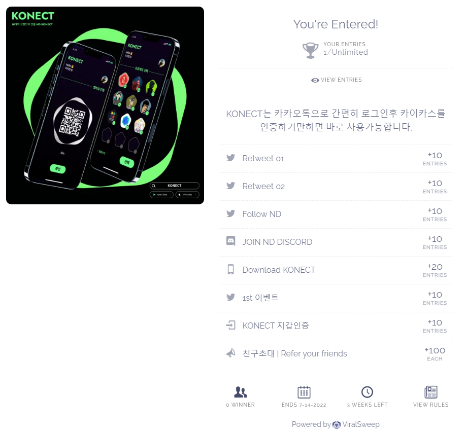 ND KONECT APP 출시 1,000klay 및 에어드랍 이벤트에 참여해보세요.