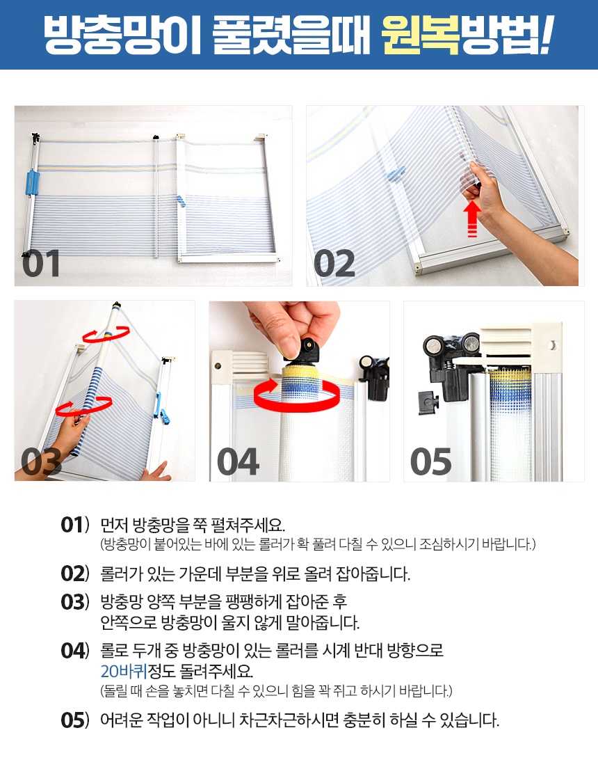 ▶ 방충망 롤이 풀렸을 때 원상태로 복구하는 방법