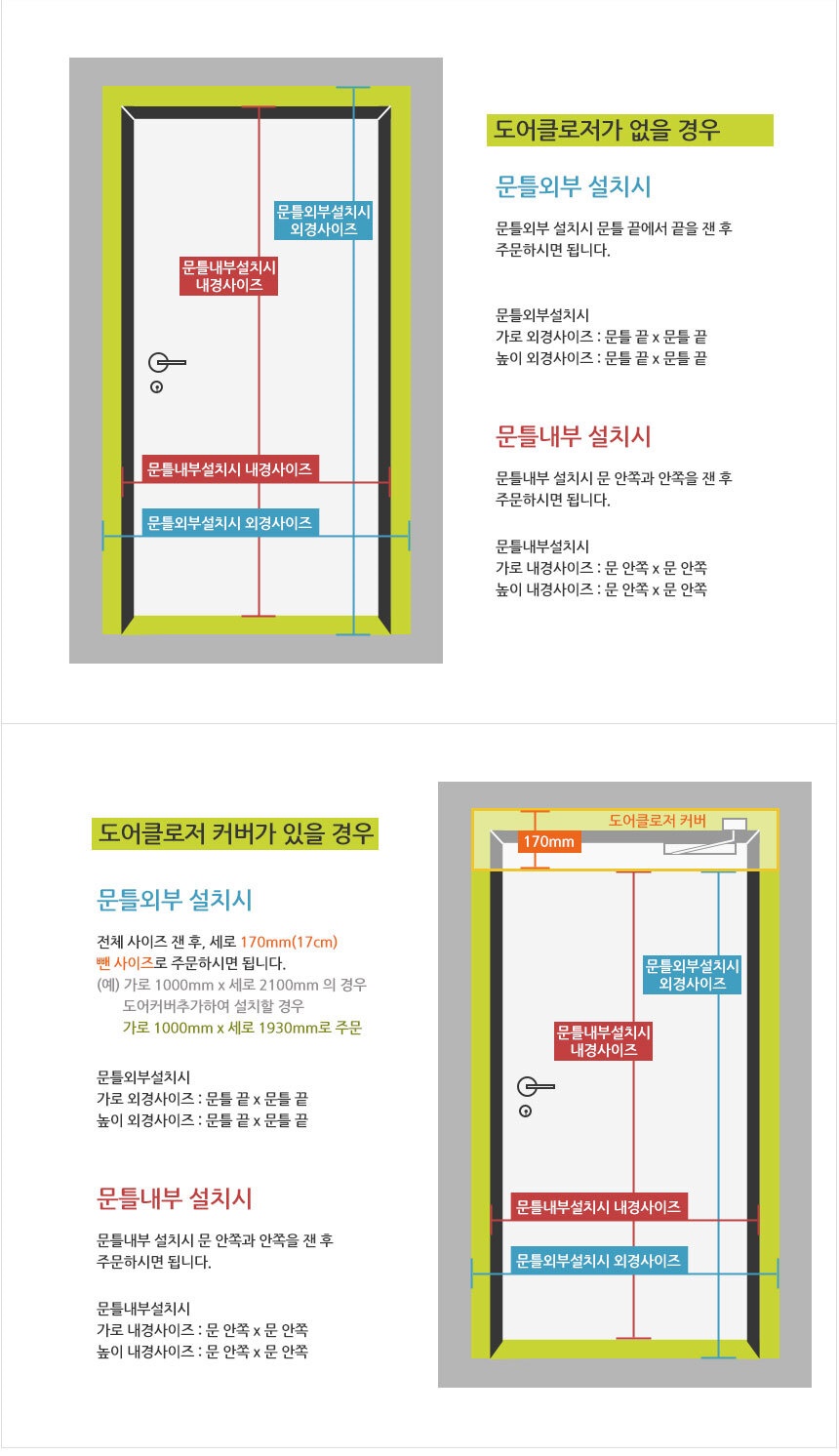 - 높이 외경 사이즈 : 문틀 끝 x 문틀 끝