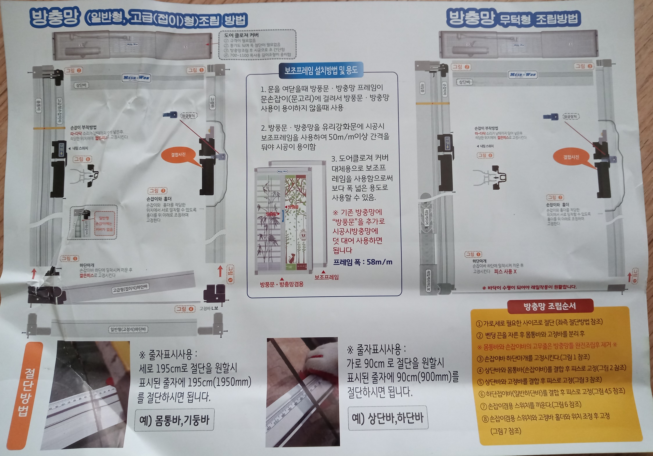 방충망을 교체할 수 있는지 살펴보았지만 쉬운 작업이 아니라서 방충문 통째로 교체하기로 했다. 하지만 업체에 시공을 맞길경우 가격부담이 크게 느껴져서 셀프시공을 해보기로 했다.