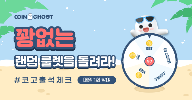 코인고스트(Coinghost)에서 7월에 "꽝 없는 랜덤 룰렛을 돌려라" 이벤트를 진행된다. GST(1, 10, 100)부터 스타벅스 기프티콘, GS 편의점 2,000원권까지 푸짐한 혜택이 지급된다.