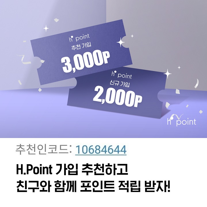 H.Point 신규회원 첫적립 3000포인트 이벤트( 추천 코드 : 10684644 )