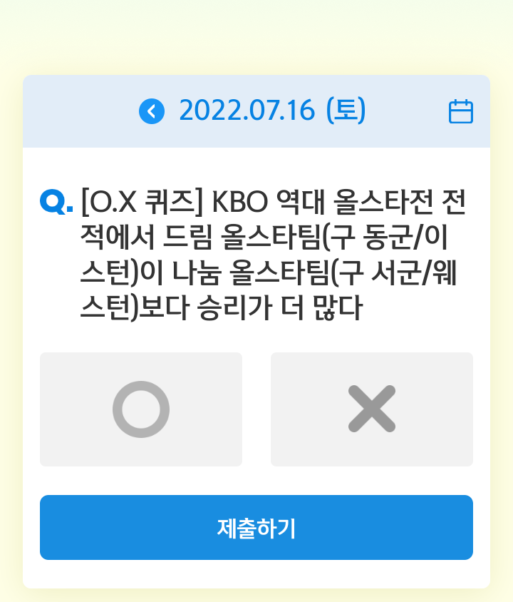 신한쏠, 야구상식 쏠퀴즈(22.07.16), 퀴즈정답, KBO 역대 올스타전 전적