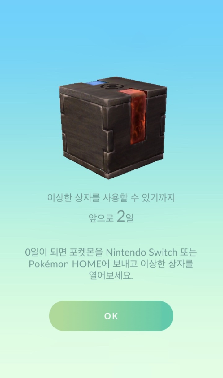 - 포켓몬고에서 포켓몬홈으로 포켓몬을 전송하면 포켓몬고 도구가방에 이상한 상자가 생긴다.