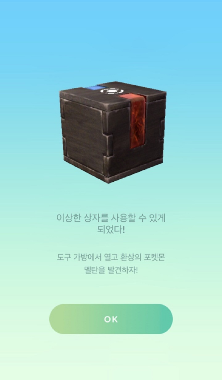 - 이상한 상자를 열면 멜탄을 잡을 수 있다. 1시간 동안 멜탄이 한마리씩 나오는데 잡으면 된다.