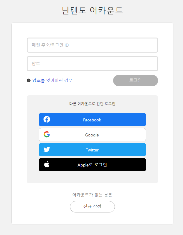 - 닌텐도 어카운트 회원가입 : https://accounts.nintendo.com/login?lang=ko-KR