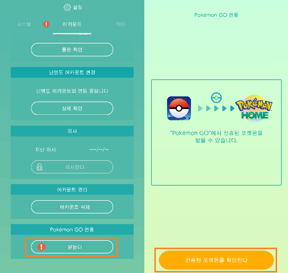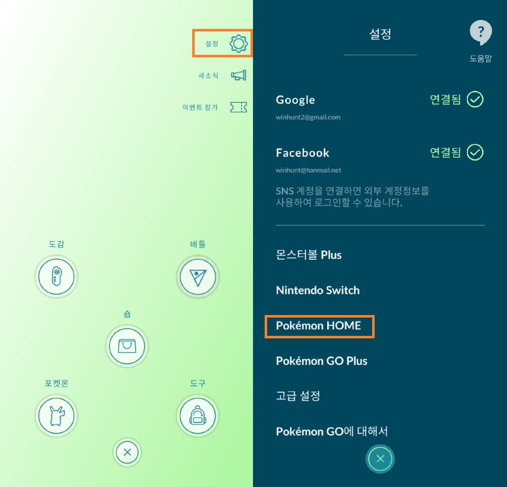 ▶ 포켓몬고와 포켓몬홈 연동