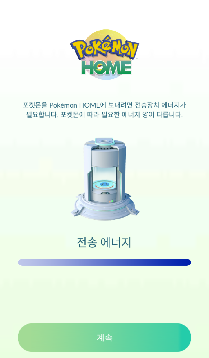 - 포켓몬고에서 포켓몬홈으로 포켓몬을 전송할때에는 일정량의 전송에너지를 소모한다.