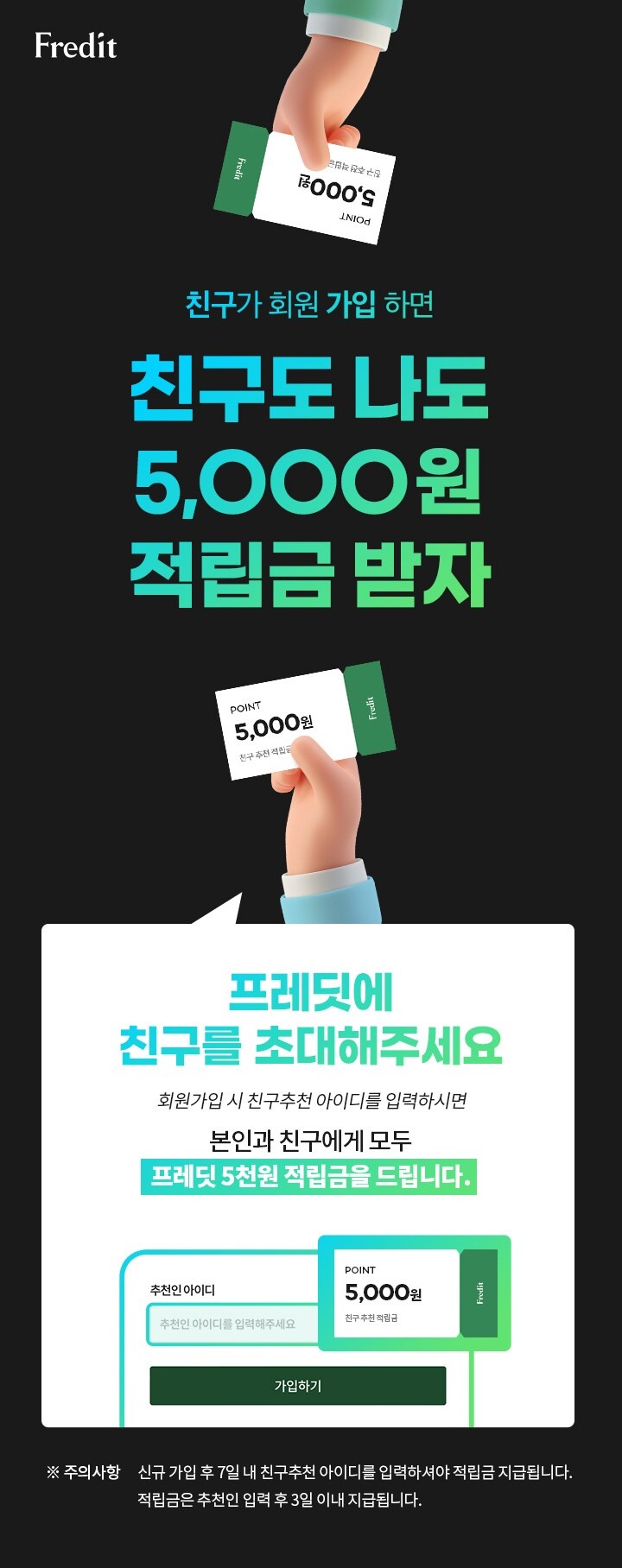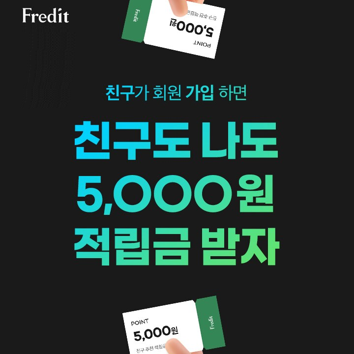프레딧 친구추천 이벤트 참여하고 5,000원 적립금 받아가세요.