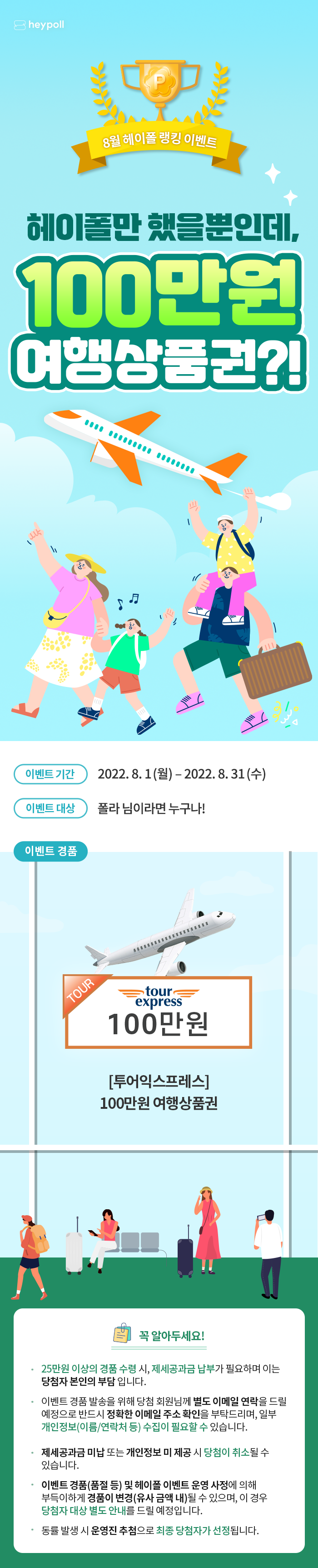 ▣ 8월 랭킹 이벤트, 헤이폴만 했을 뿐인데, 100만원 여행상품권?!