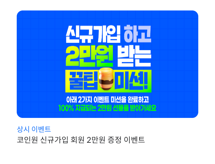 1) 신규 가입하고 신규 상장 코인 거래하면 2만원 증정 이벤트(상시)
