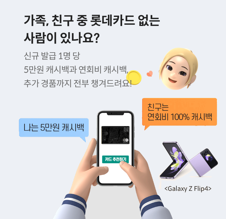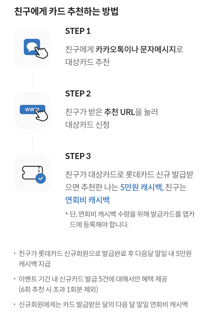 - 대상/대상카드 : 롯데카드 회원 / 친구에게 카드 추천 대상카드