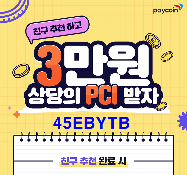 2022년 10월 페이코인 친구추천 이벤트가 진행중이다. 추천코드 입력시 친구과 추천인에게 2PCI 리워드 즉시 자동지급 된다. 4명 이상 친구추천 완료시 3만원 상당의 PCI 추가 지급된다.