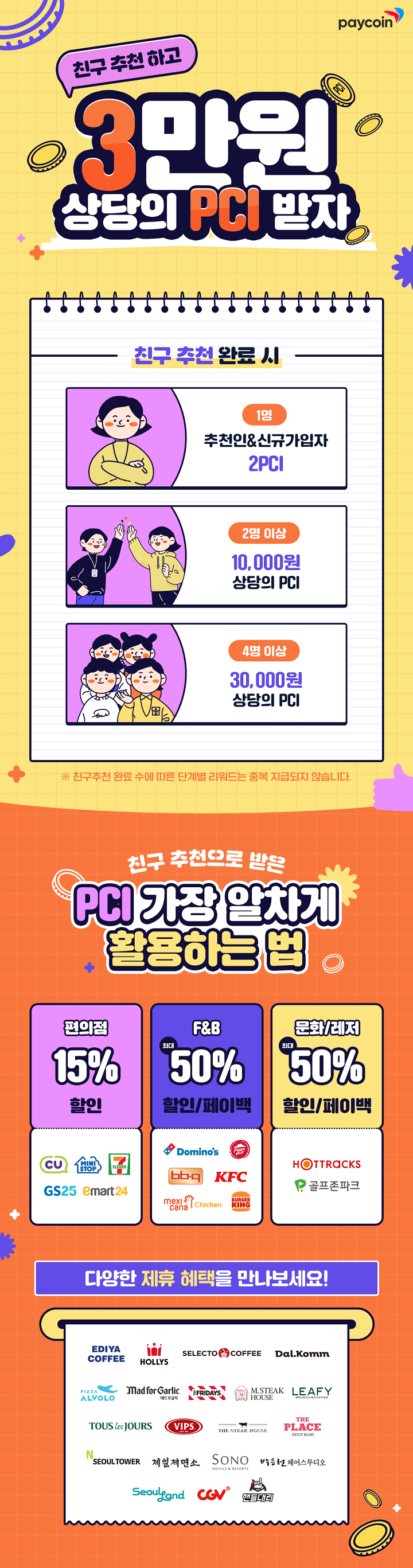 2) 이벤트 기간 내 최종적으로 달성한 친구추천 수에 따라 최대 3만원 상당의 PCI 추가 증정