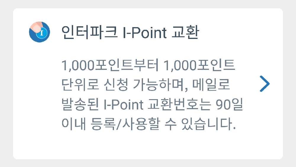 - I-Point 교환은 1000포인트부터 교환이 가능
