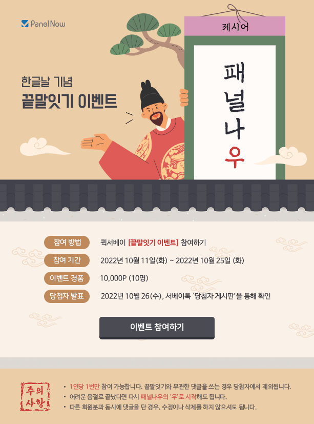 ▣ 패널나우(PanelNow) 한글날 특집! 끝말잇기 참여하고 포인트 받으세요