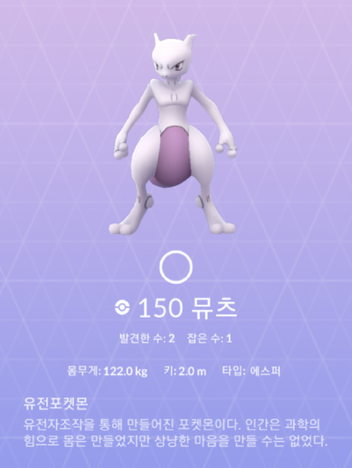 - 유전포켓몬, 유전자조작을 통해 만들어진 포켓몬이다. 인간은 과학의 힘으로 몸은 만들었지만 상냥한 마음을 만들 수는 없었다.