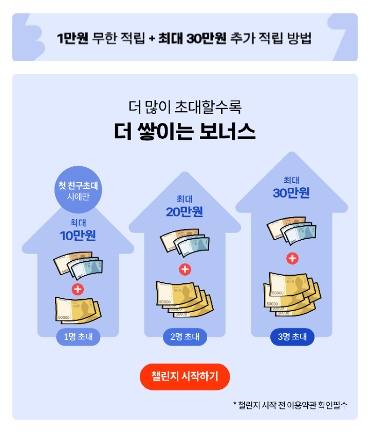 - 1만원 무한적립 + 최대 30만원 추가 적립