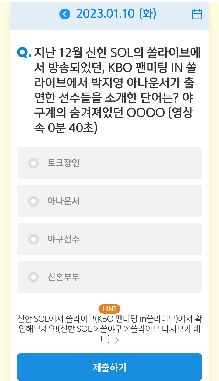 신한쏠, 야구상식 쏠퀴즈(23.01.09), 퀴즈정답, 야구계의 숨겨져있던 OOOO