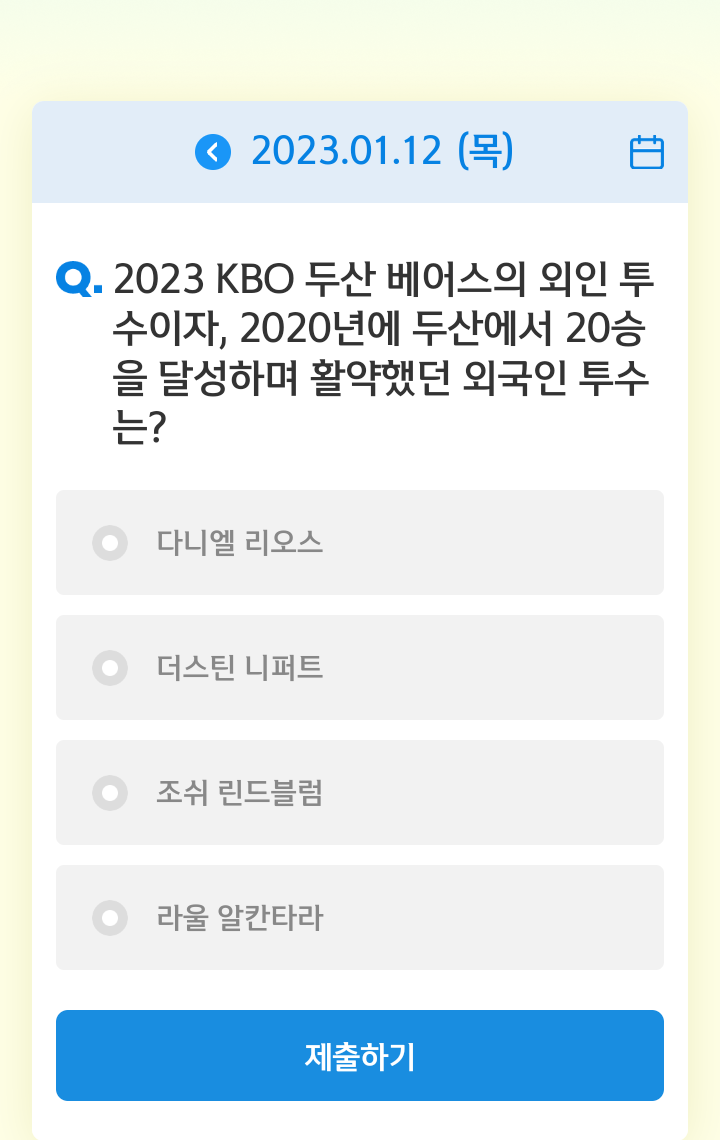 신한쏠, 야구상식 쏠퀴즈(23.01.12), 퀴즈정답, 두산 베어스의 외인 투수
