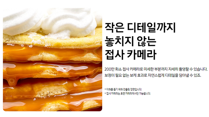 200만 화소 접사 카메라로 미세한 부분까지 자세히 촬영할 수 있다. 보정이 필요 없는 보케 효과로 자연스럽게 디테일을 담아낼 수 있다.
