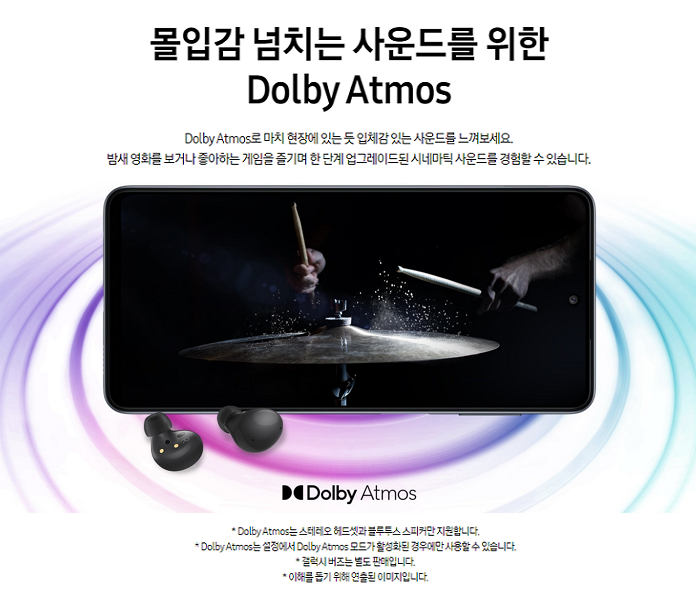 Dolby Atmos로 마치 현장에 있는 듯 입체감 있는 사운드를 느낄수 있다. 영화를 보거나 좋아하는 게임을 즐기며 한 단계 업그레이드된 시네마틱 사운드를 경험할 수 있다.