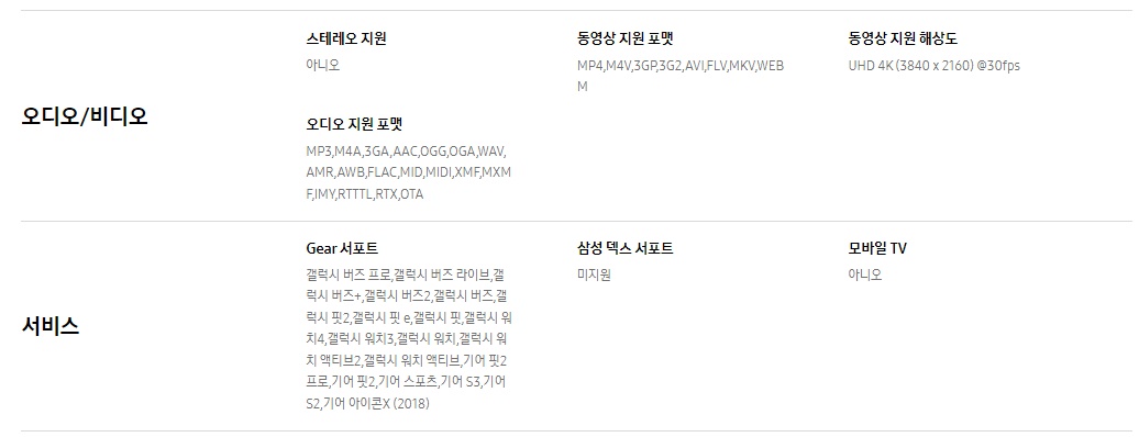 - 센서/기타 : 지문인식, FaceID, 삼성페이, Dolby Atmos