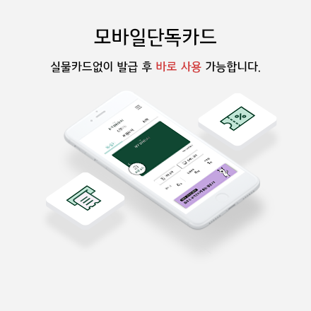 - 모바일단독카드 : 실물카드없이 발급 후 바로 사용 가능